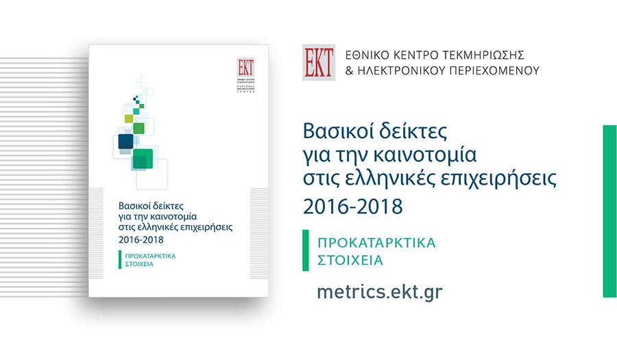 Η δημοσίευση των δεικτών εντάσσεται στο πλαίσιο της τακτικής παραγωγής των επίσημων στατιστικών για την Έρευνα, Ανάπτυξη και Καινοτομία στην Ελλάδα, που πραγματοποιεί το ΕΚΤ, ως φορέας και εθνική αρχή του Ελληνικού Στατιστικού Συστήματος, με τη συνεργασία της Ελληνικής Στατιστικής Αρχής. H έκδοση "Βασικοί Δείκτες για την Καινοτομία στις Ελληνικές Επιχειρήσεις 2016-2018 – Προκαταρκτικά Στοιχεία" διατίθεται στη διεύθυνση https://metrics.ekt.gr/publications/403.