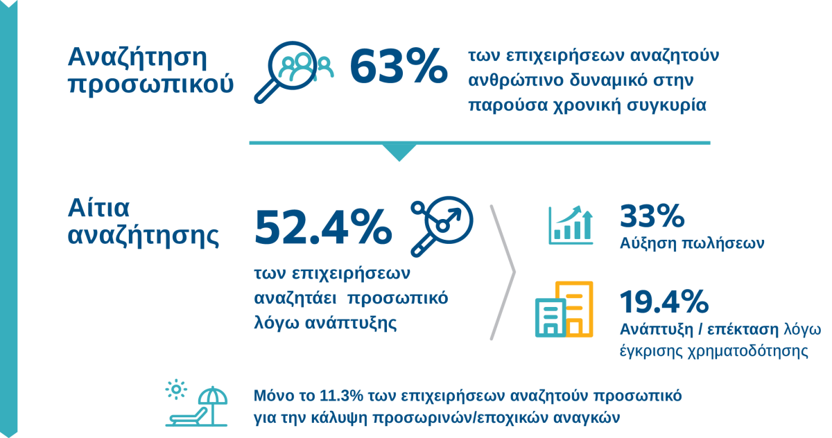 Η έρευνα πραγματοποιήθηκε τον Ιούλιο του 2024 και παρέχει μια σαφή εικόνα των προκλήσεων και των τάσεων στην αγορά εργασίας στις ελληνικές επιχειρήσεις.